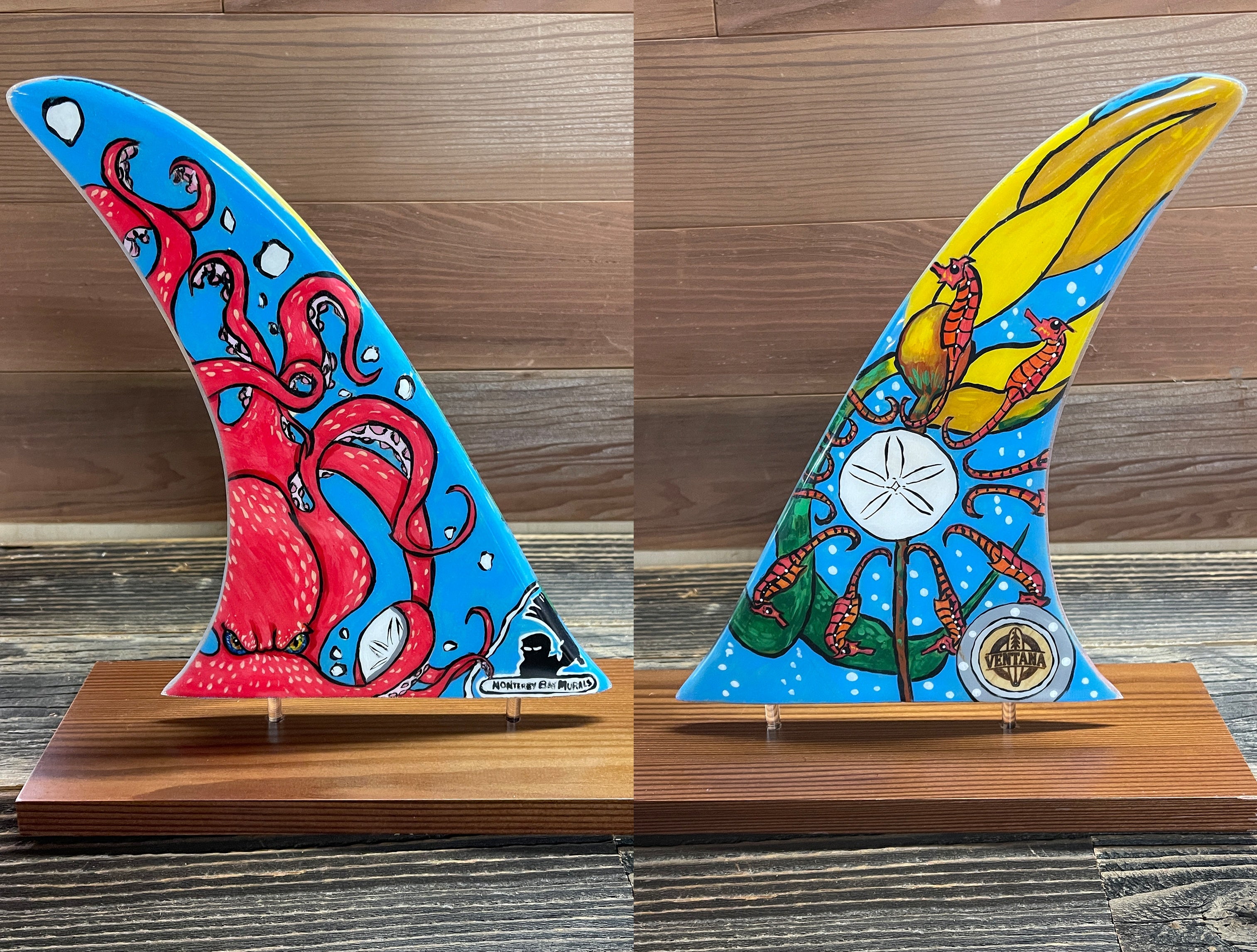 This one-of-a-kind longboard fin was hand painted by Watsonville-based artist Paul Dee as part of the Ventana Fin Artist Project.Paul Dee - Monterey Bay Murals